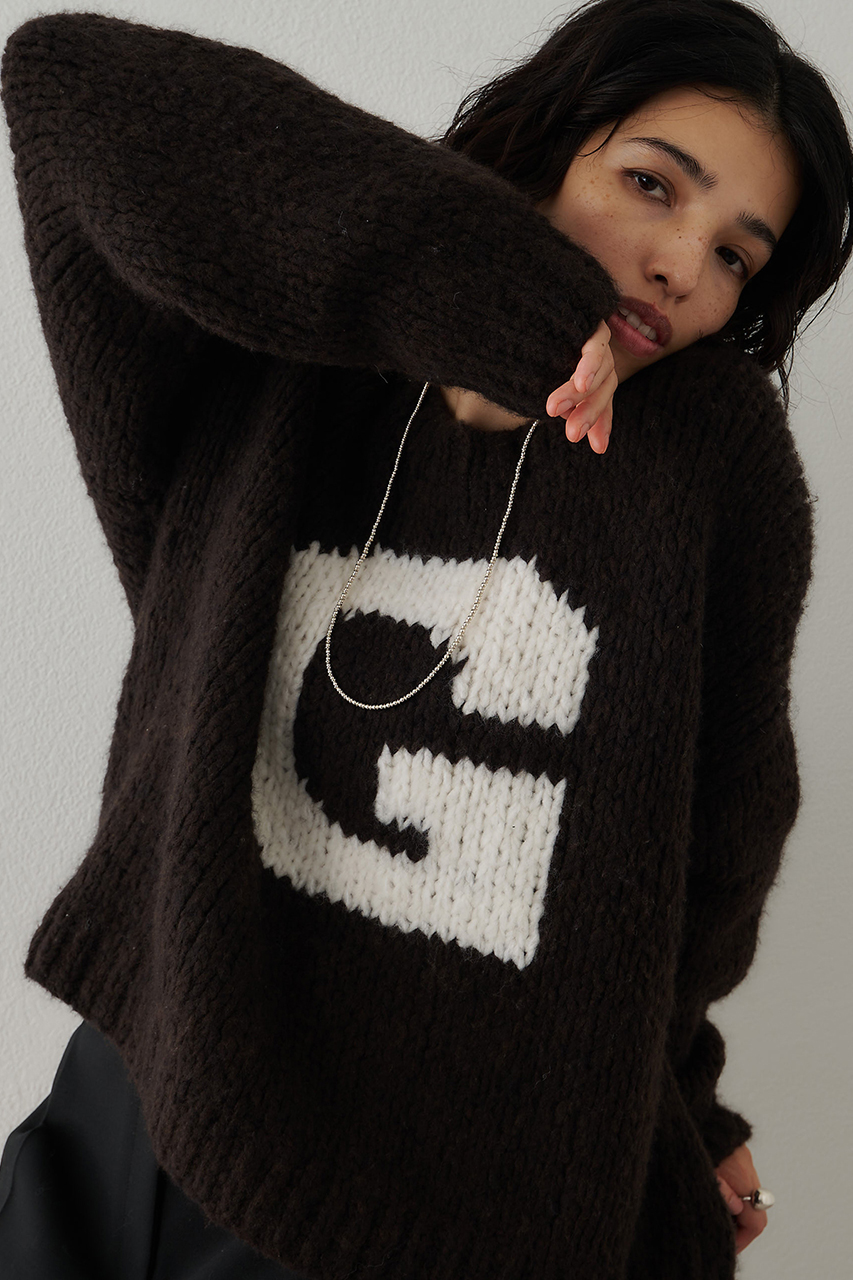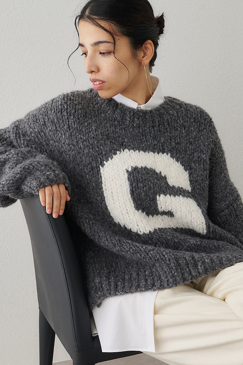 ■イタリア糸で編まれた、ロゴ入りハンドニット。ボリュームのある身幅や袖が立体感のあるシルエットを演出してくれます。