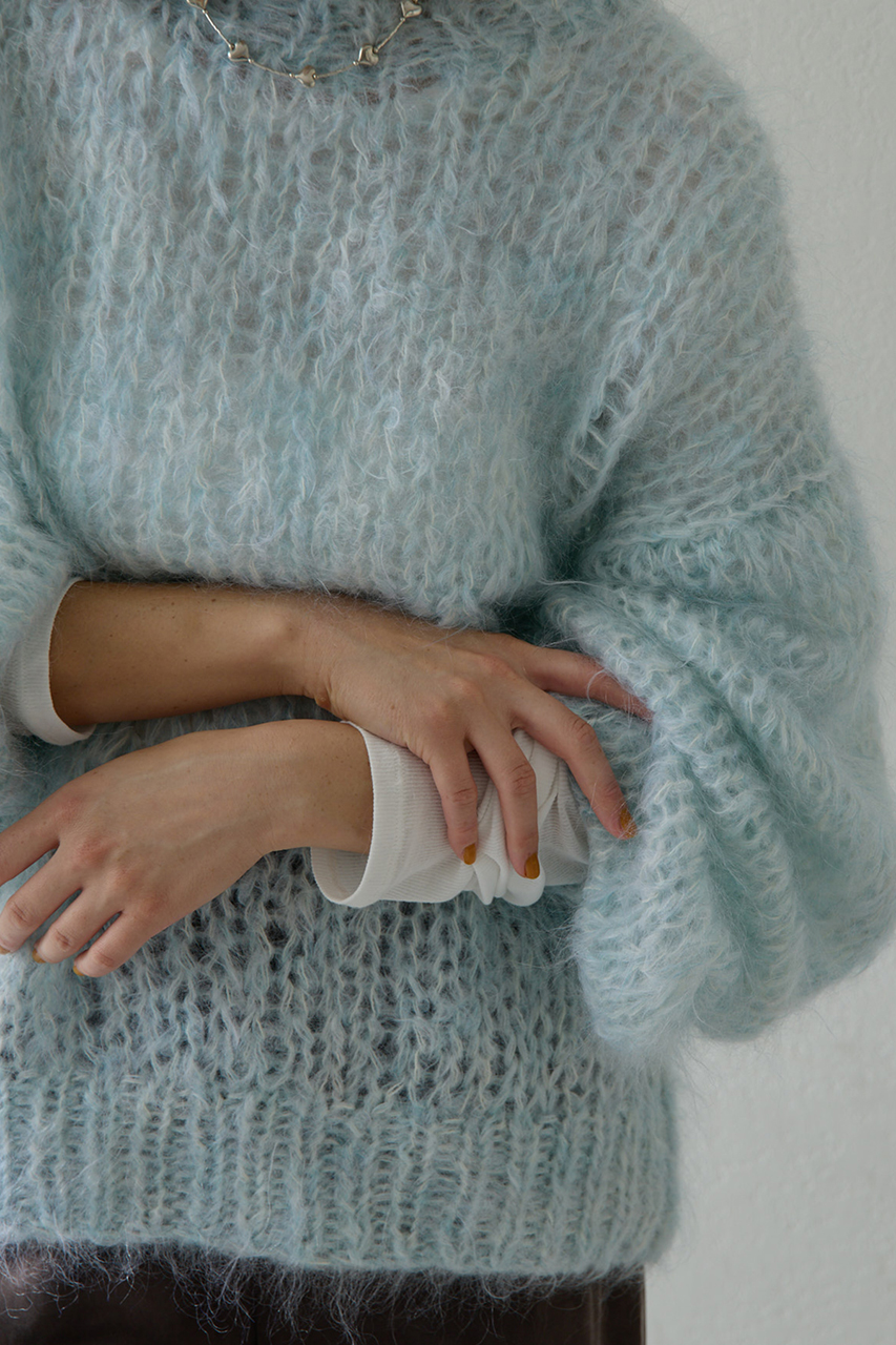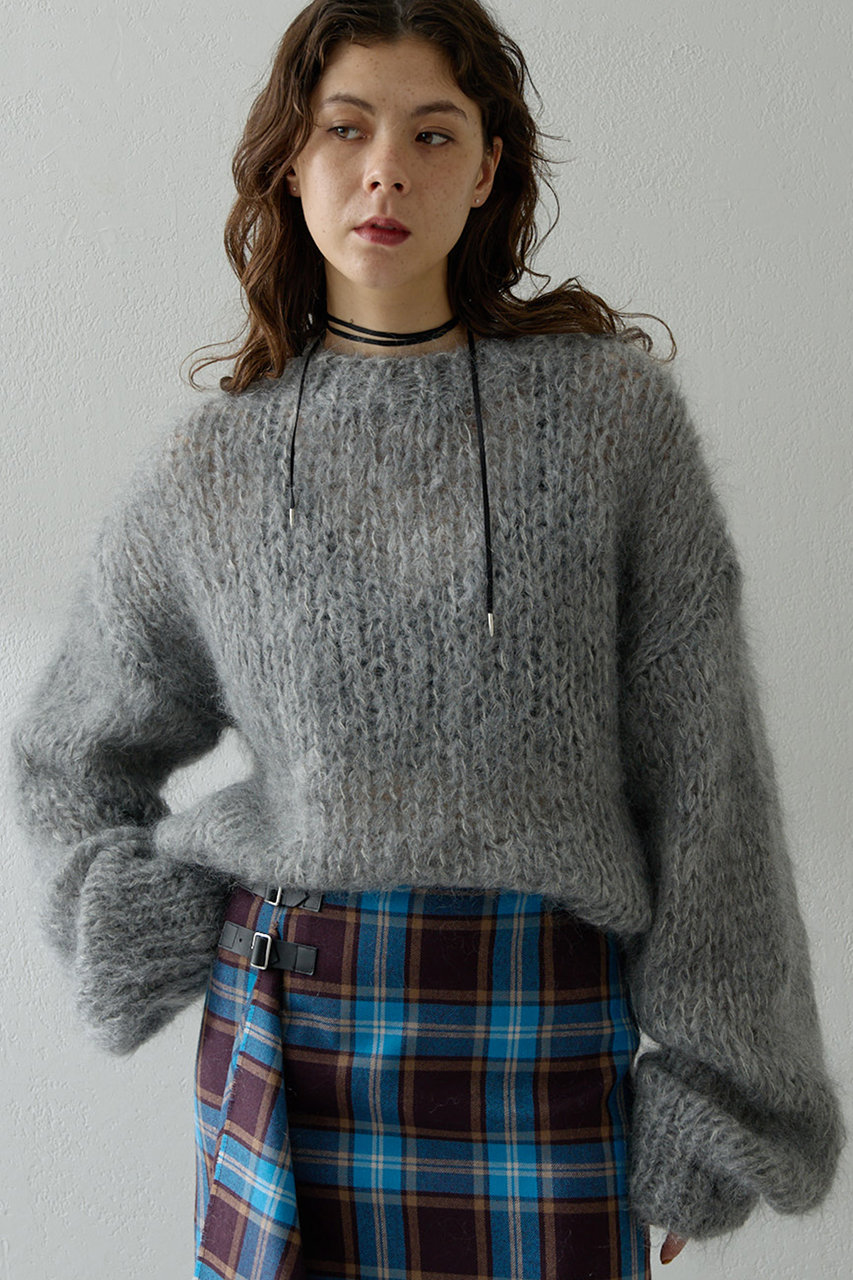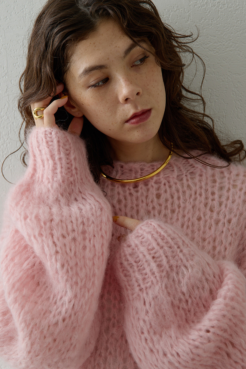 シーズンムードを盛り上げる、モヘヤ混ニットプルオーバー。