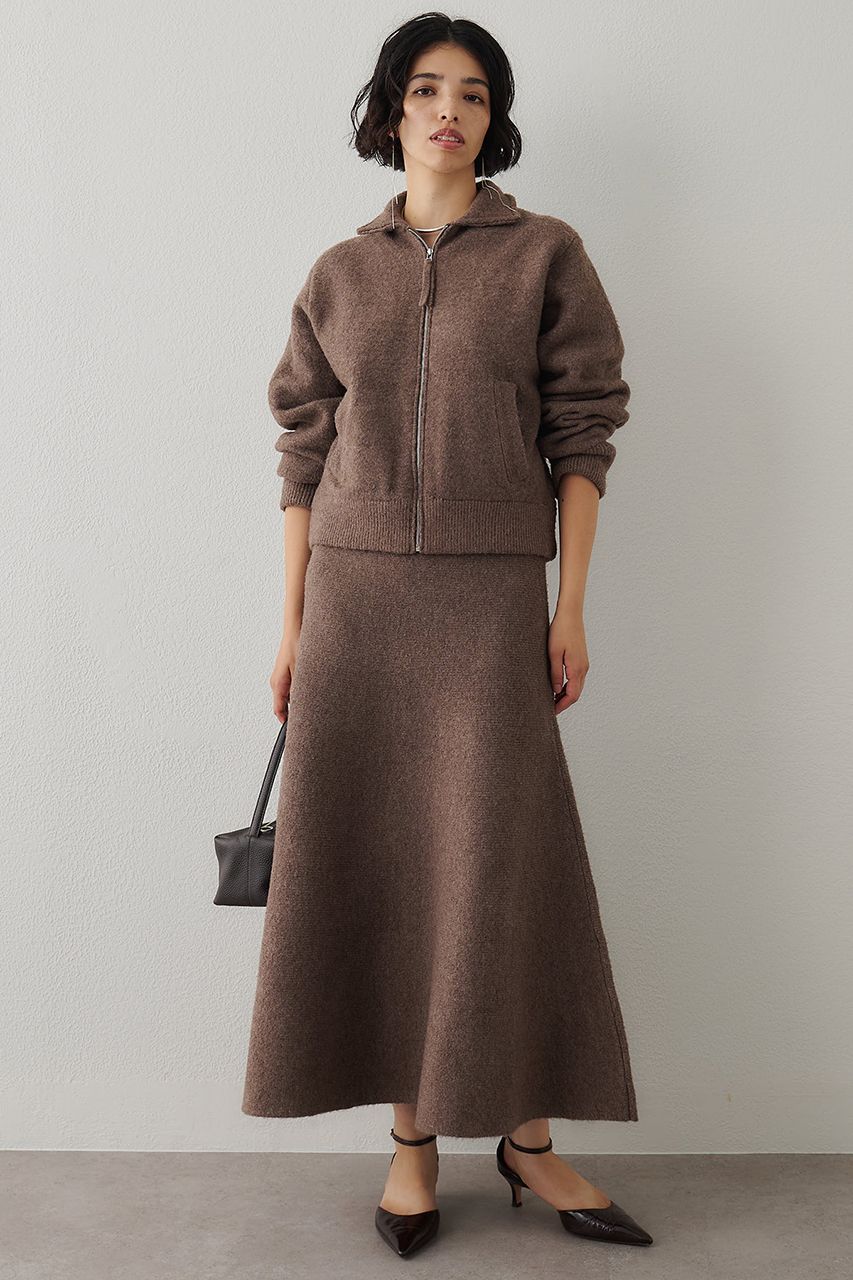 同素材のニットブルゾンとのセットアップもおすすめ。