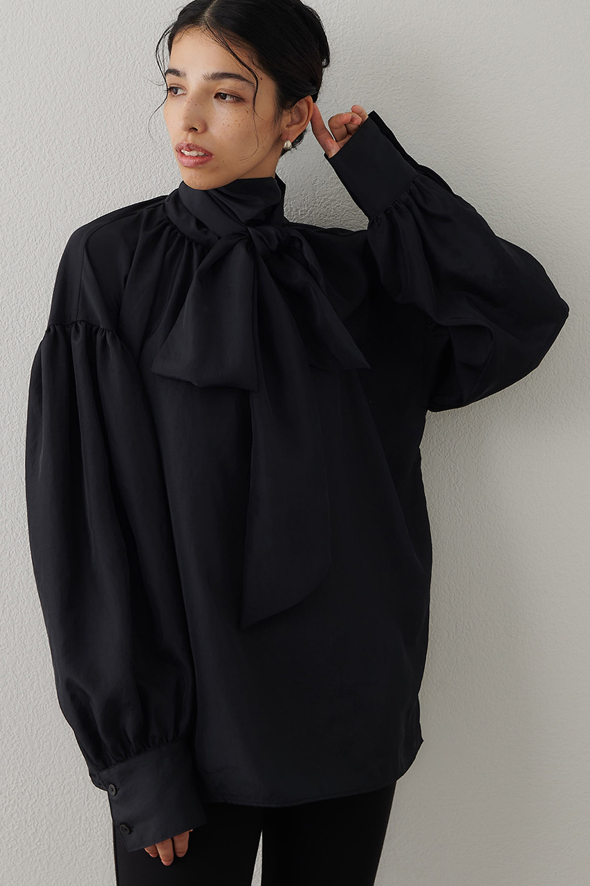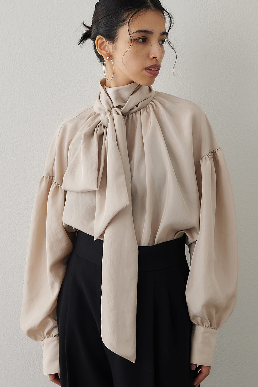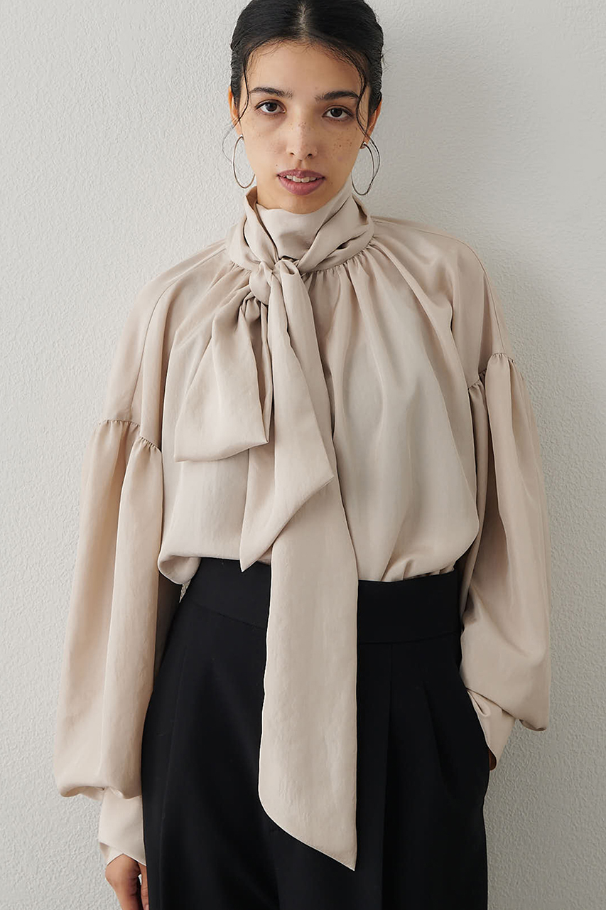 幅広いシーンで活躍できる、シルク見えボウブラウス
