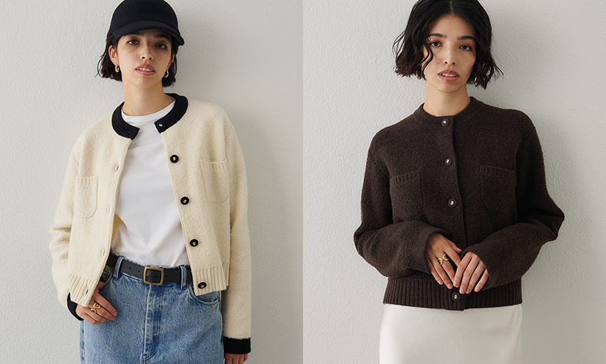 ジャケット風に楽しめる、クラシカルなニットカーディガン