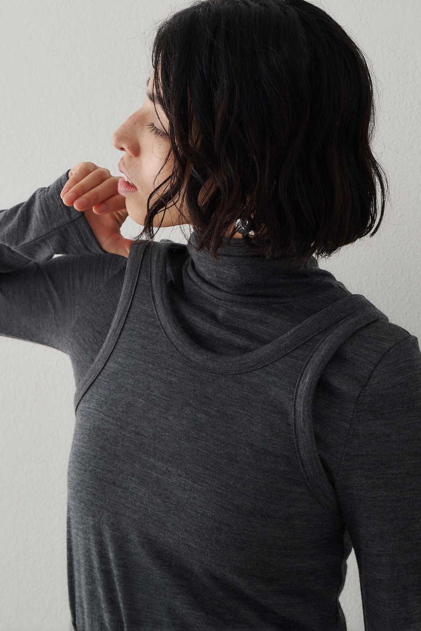 タートルネックプルオーバーとタンクトップがセットになった一着。