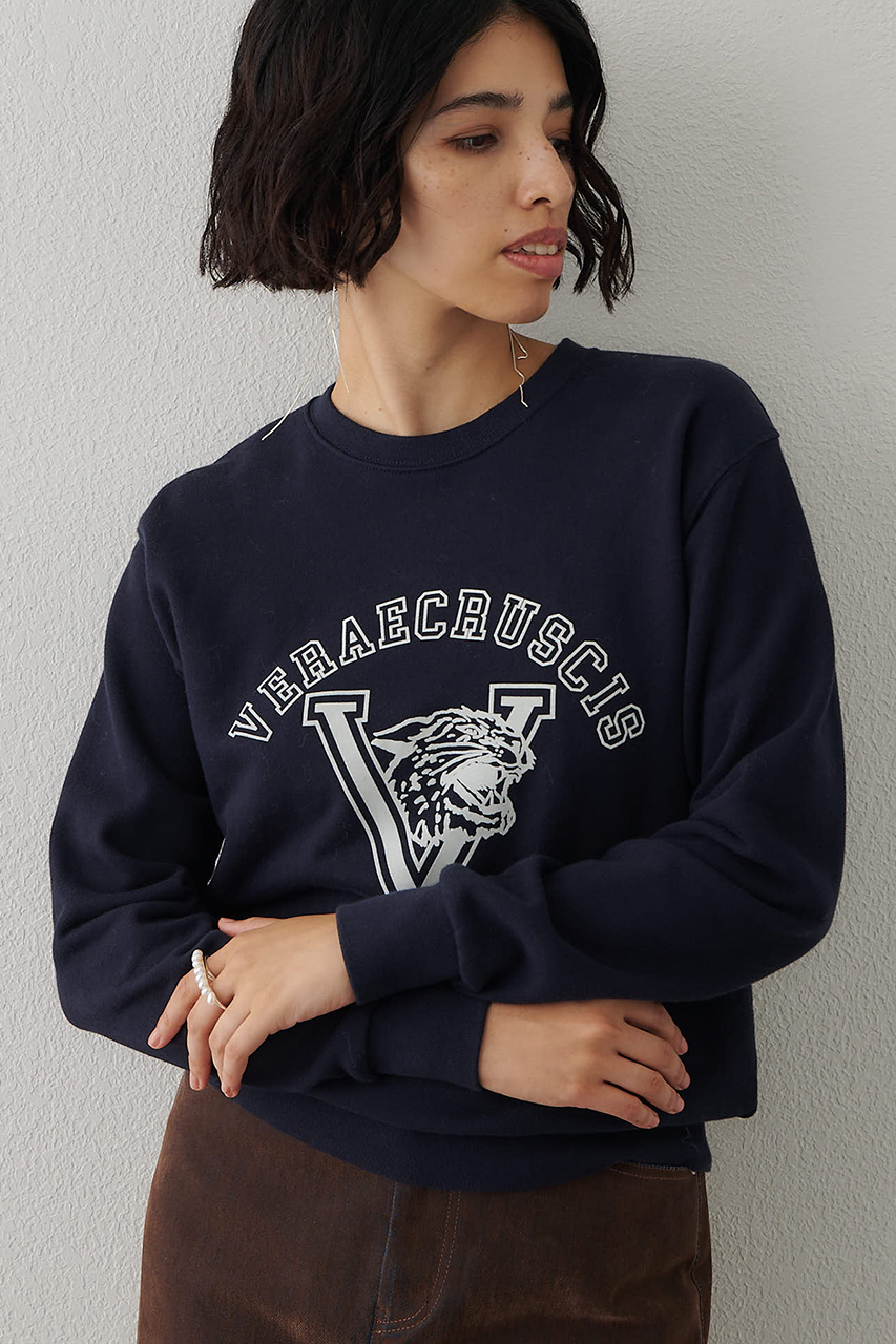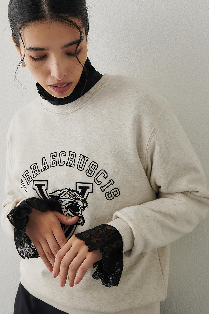 フロッキープリントがポイントになったスウェットプルオーバー。