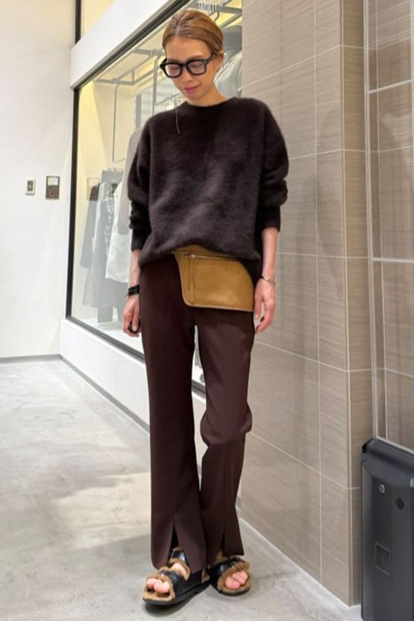 一枚で絵になる、リラクシングなクルーネックファーニット