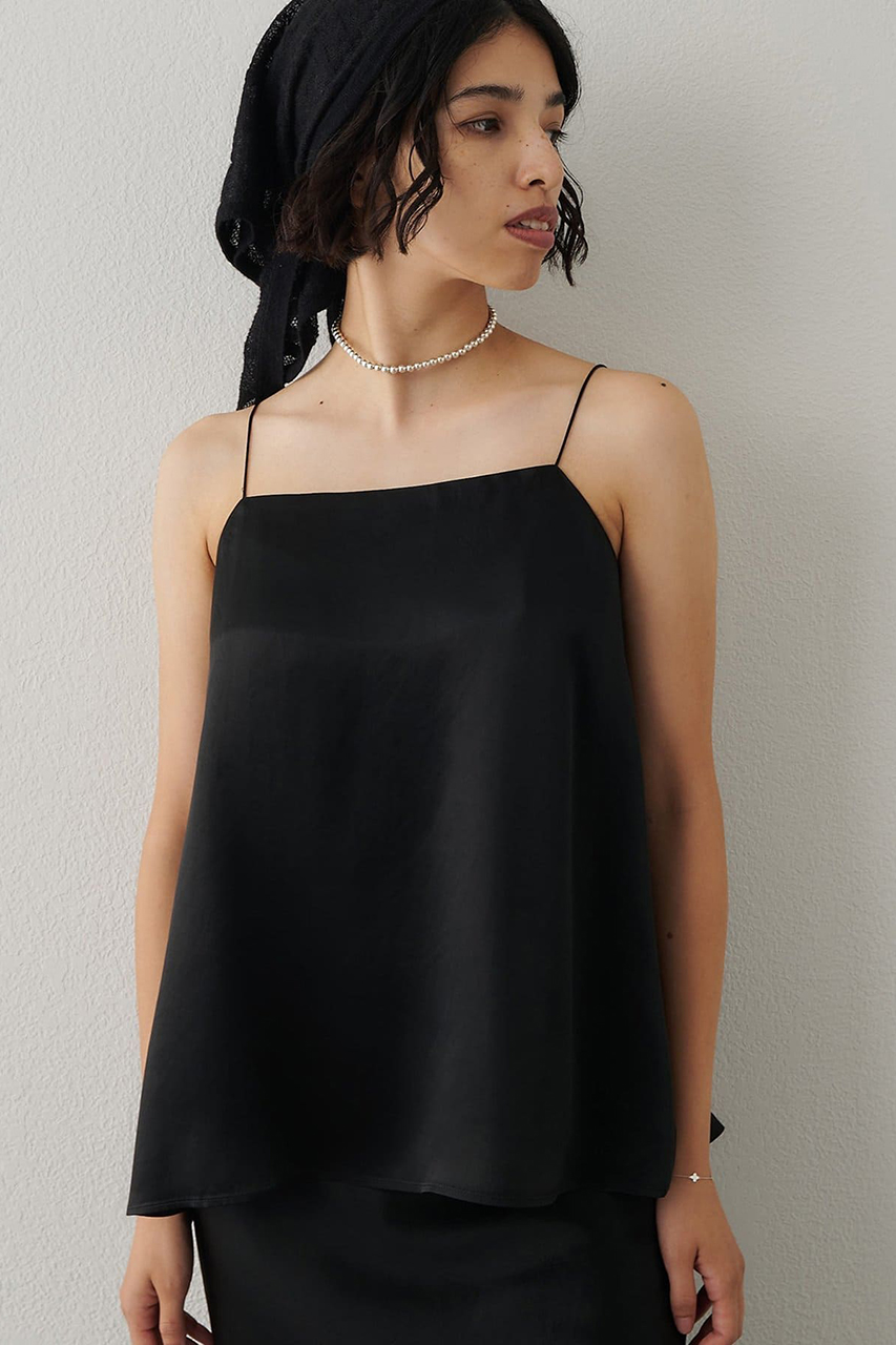 上質なサテン生地を使用したキャミソールとフレアスカート