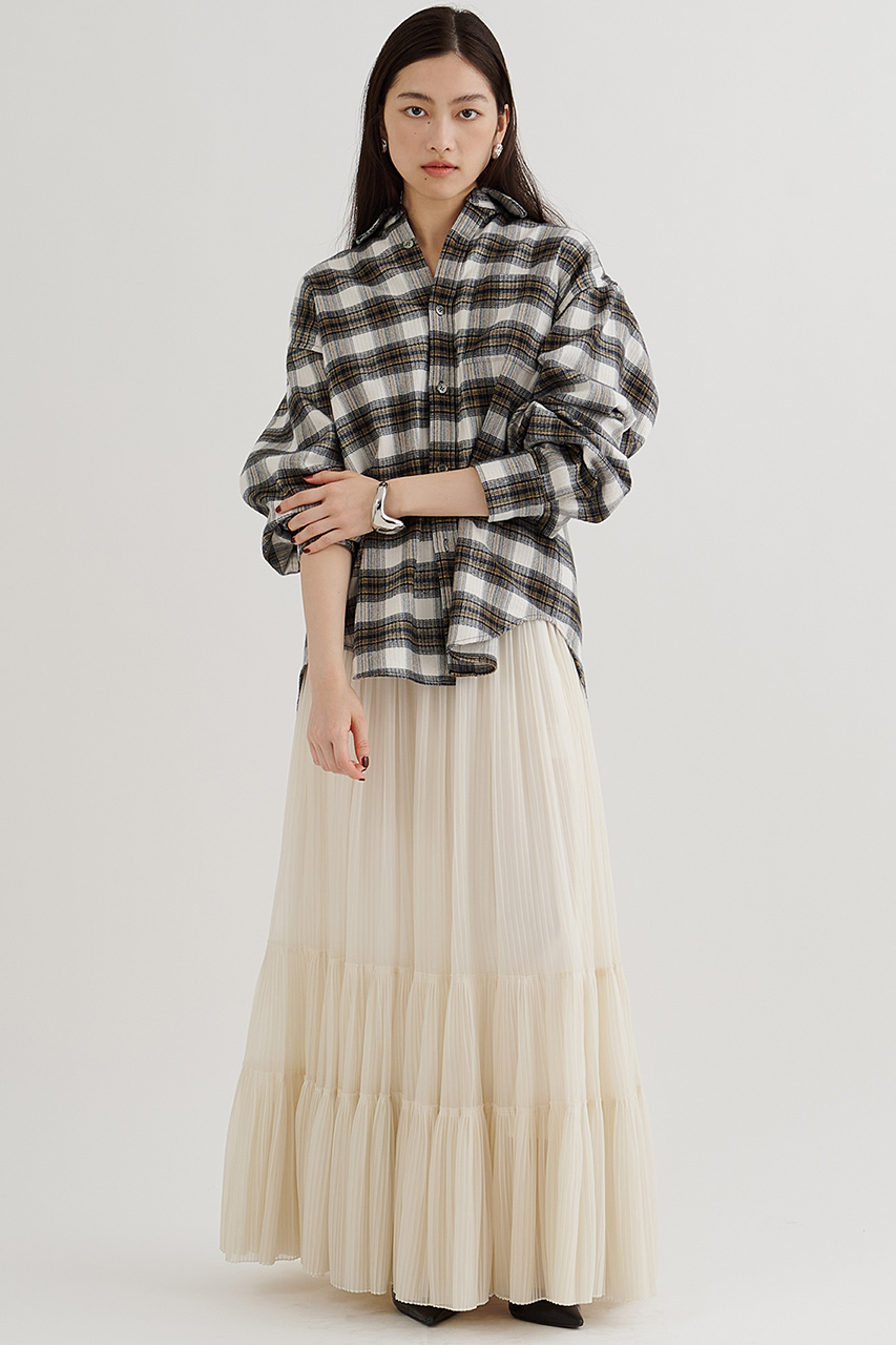ライナー付ミリタリーコート/オーガンジーティアードスカート