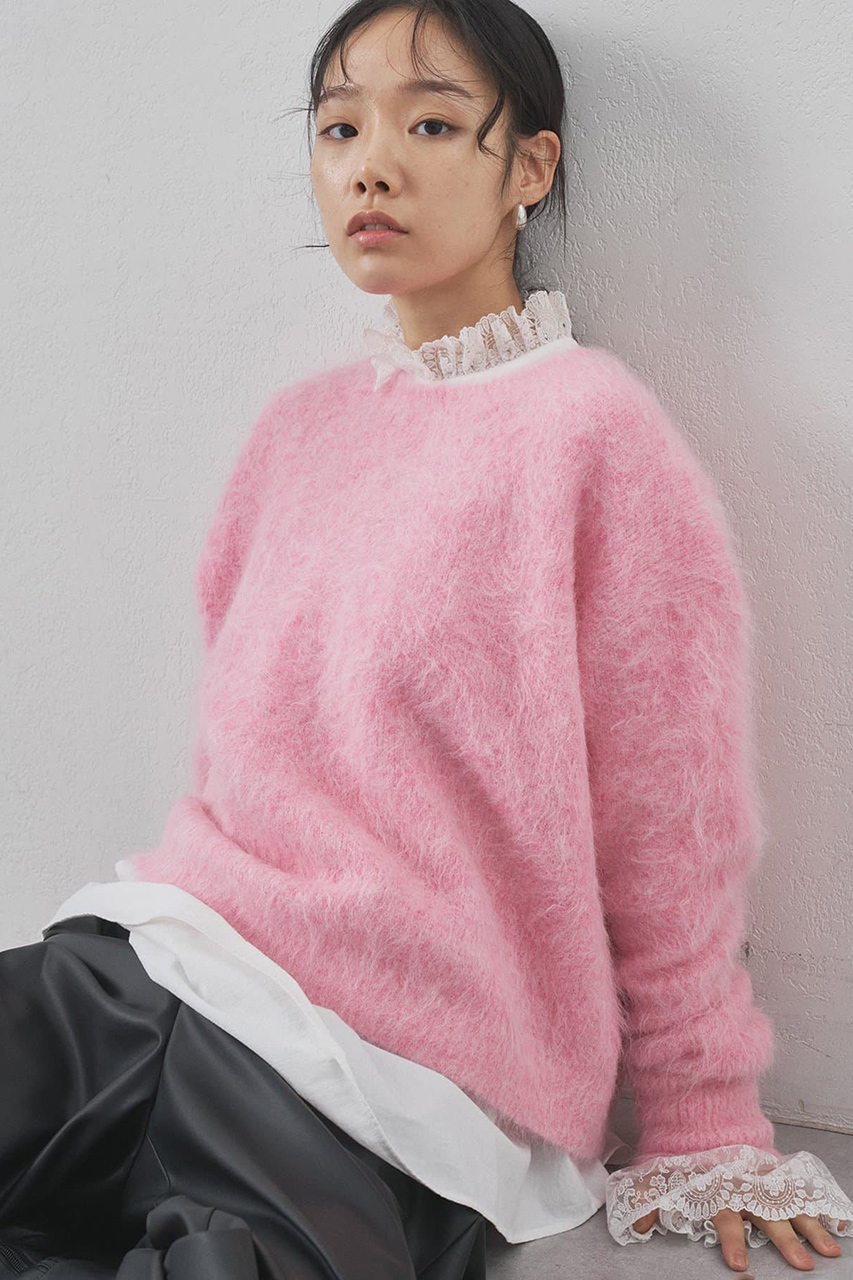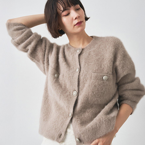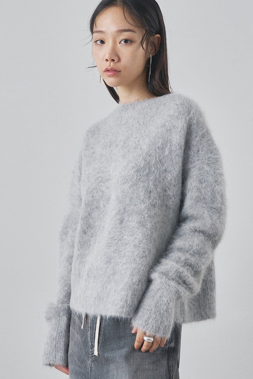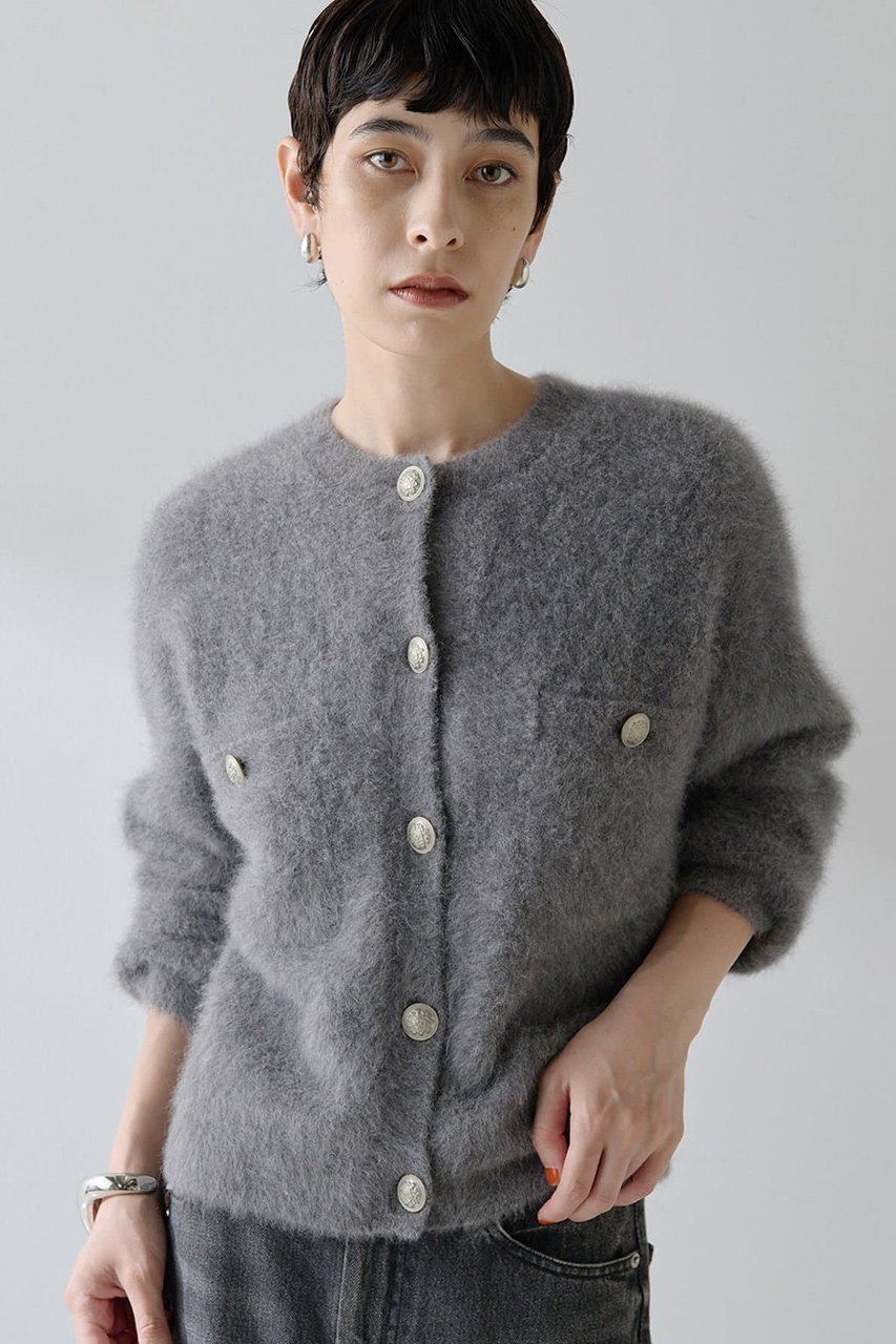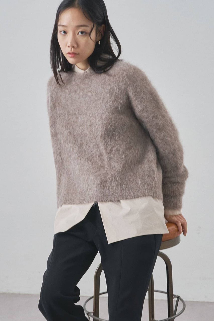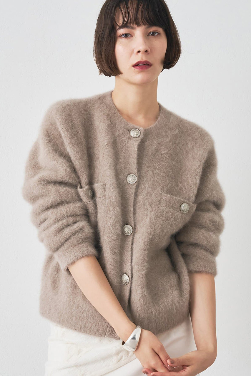 ファーボタンジャケット/スーリーアルパカクルーネックプルオーバー