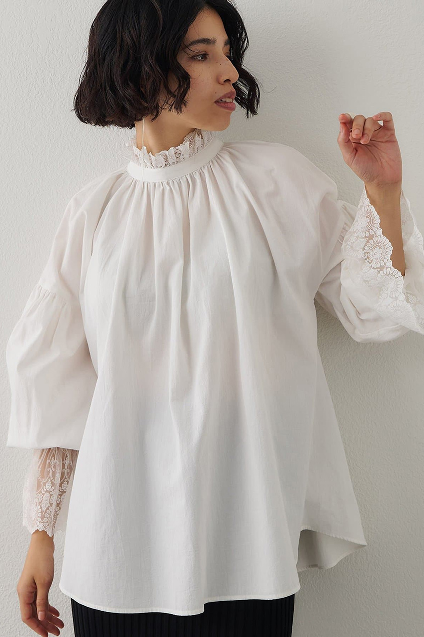 刺しゅうジョーゼットプルオーバー/レースギャザーブラウス
