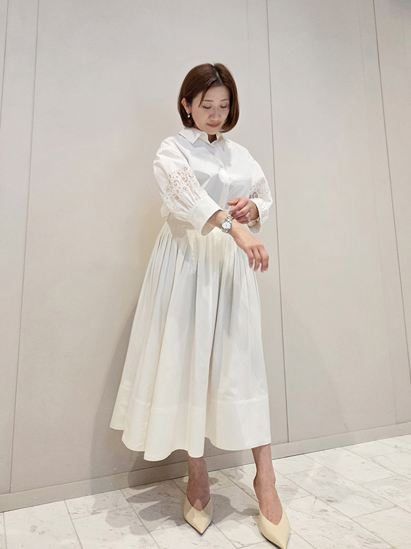 夏の気配を感じるいま、あらためて心惹かれるのが繊細なチェーンピアス。スズランをモチーフにしたこのピアスとペンダントは、デザイナーがパリで過ごした日々の記憶から着想を得たもの。大切な人へスズランを贈る風習に彩られた街の情景が、さりげなくデザインに息づいています。花の先端には小さな水晶をセッティング。光を受けて控えめにきらめき、動きに合わせてさまざまな表情を見せます。今年らしいフェミニンなムードを無理なく取り入れたいので、ミニマルなシャツやワントーンコーデにひとつ添えて、甘さを抑えたスタイリングで楽しみたい。