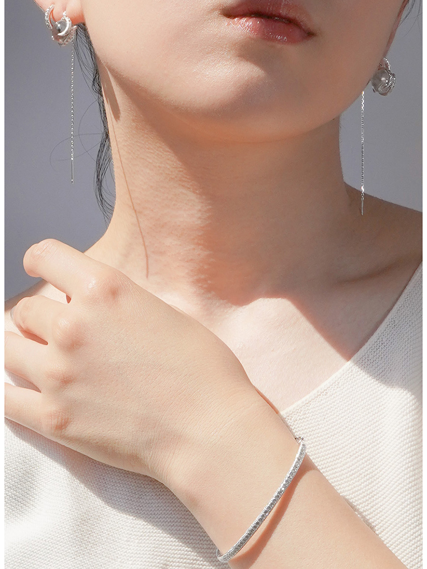 「アヤミジュエリー」を代表する水晶を包み込むピアスとブレスレットのコーディネート。