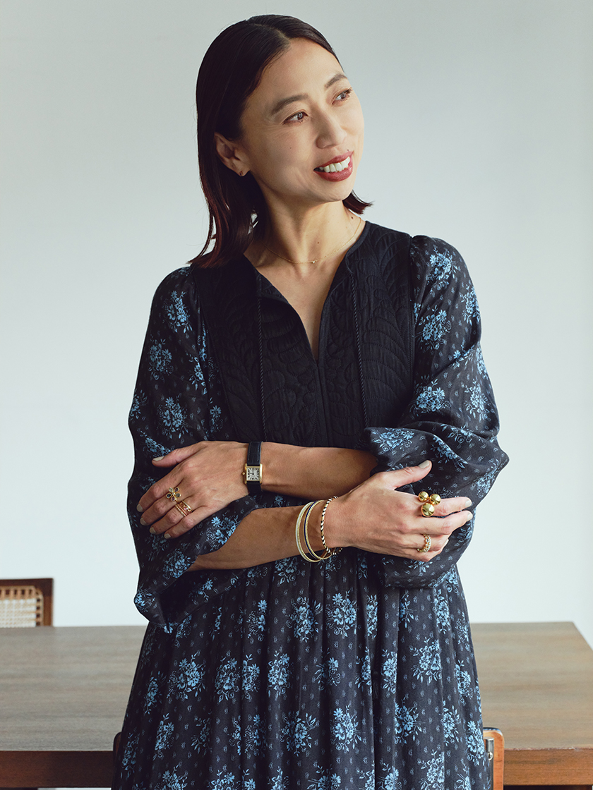 シーズンレスに使えるジレはここ数年、ワードローブで大活躍中! 「エブール」の新作で登場したマニッシュなベストは、しなやかで清涼感のあるトロピカル生地なので真夏にもおすすめです。ほどよくシェイプした美シルエットはバックのベルトで調整も可能。今季はあえてヴィンテージライクなオーガンジースカートと合わせたミックスコーデが気分。スニーカー合わせでハズすのがマイルールです。