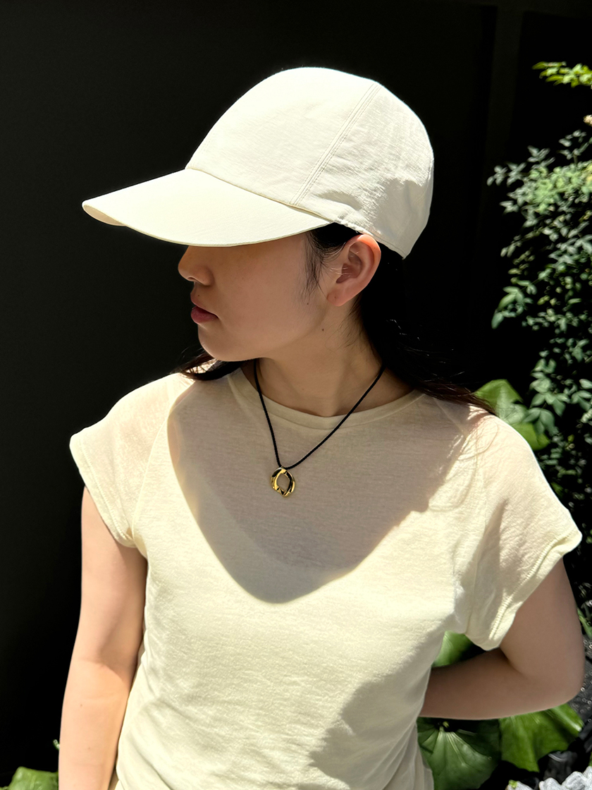 「イリスフォーセブン」で定番の“fog”キャップ”、ひんやりとした冷感素材の夏仕様としてNEWバージョンが登場! つばを日除けのために通常のキャップよりも幅広に設計。通気性を高めたほか、防臭機能もそなえていて、普段使いに最適です。 ナイロンの優しい光沢がモダンな印象で、スタイリッシュに被れるキャップ。ほどよい透け感とボディラインをしなやかに美しく見せる「シアーキャプスリーブトップス」と合わせれば、洗練感あるサマースタイルに!