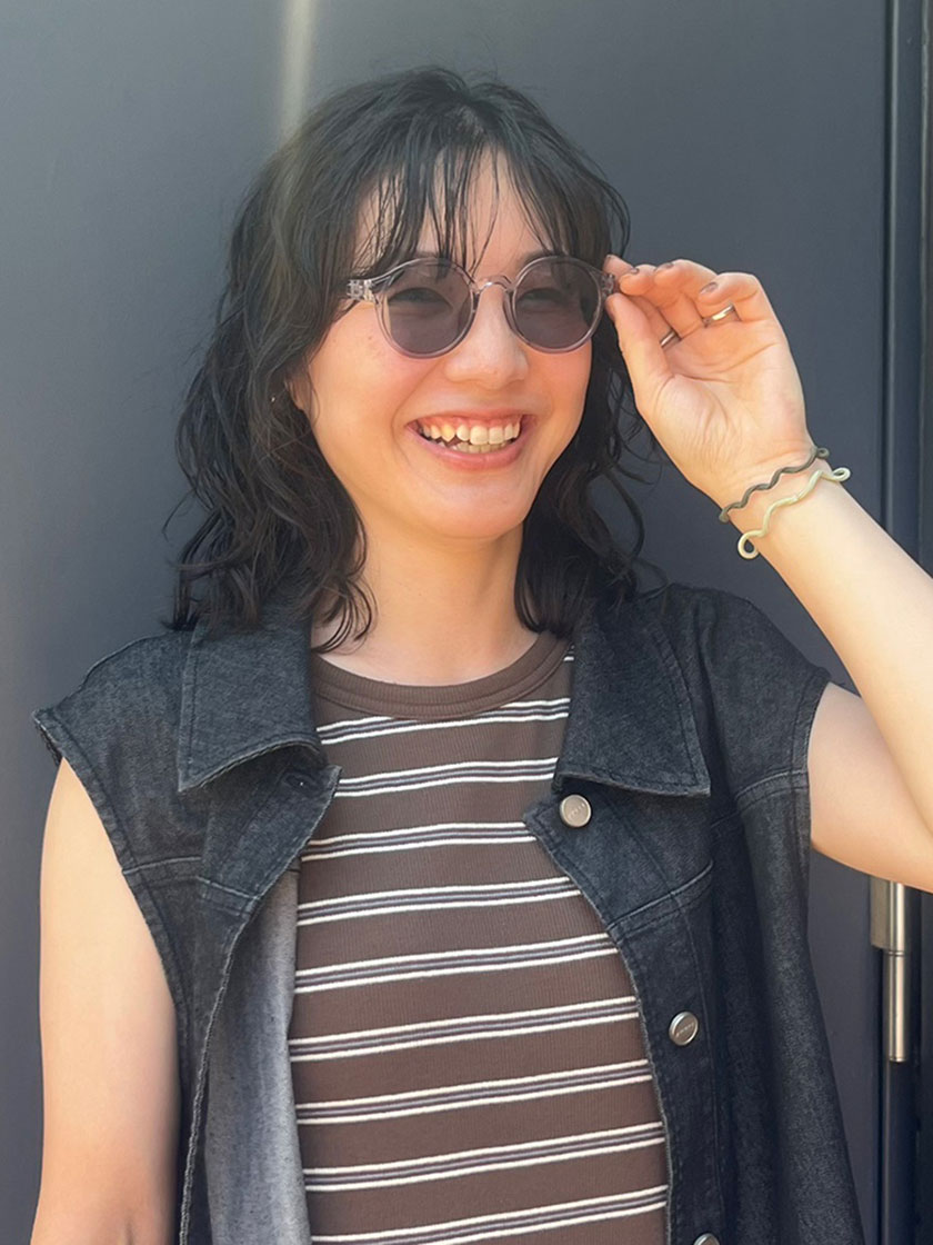 軽やかな色合いと小ぶりなサイズ感が、顔周りにほどよいモード感を加えてくれます。小顔の方にもフィットしやすく、使い勝手のよい一本です。いつものスタイリングに少しだけ冒険を添えたいときにぴったりのデザインです。