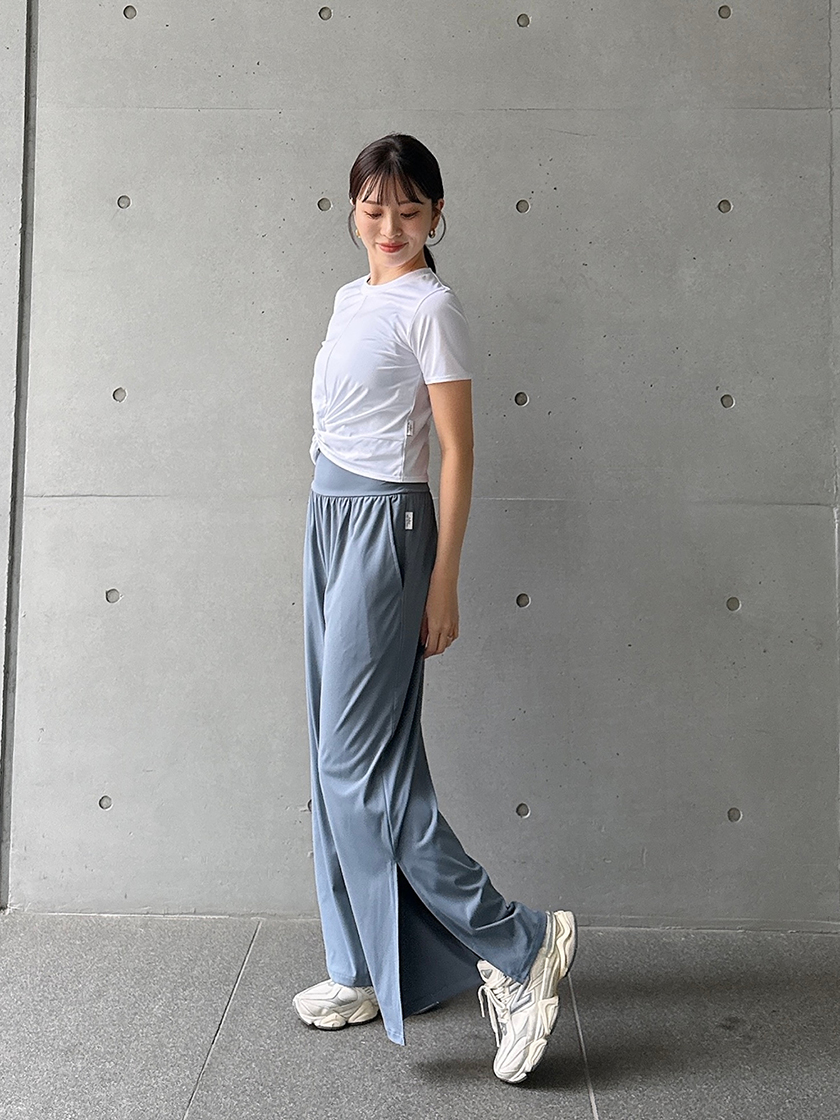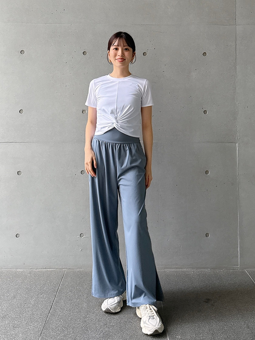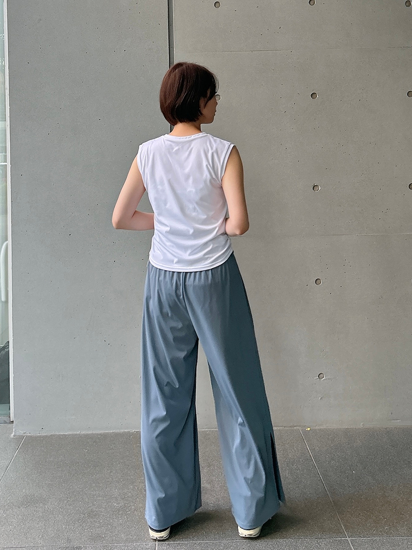 締め付け感のないワイドパンツは、ワークアウトはもちろん、リラックスしたい日にも大活躍。