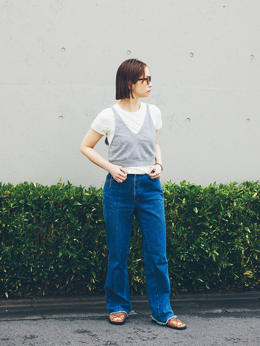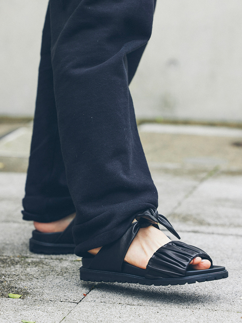 軽快なシアー素材とタフなタンクソールとのギャップが楽しめる“Clair”。中底をレザーで巻いているため、カジュアルになりすぎず上品な印象に。ラフなデニムスタイルからフェミニンなワンピースまで幅広いスタイルにマッチ。