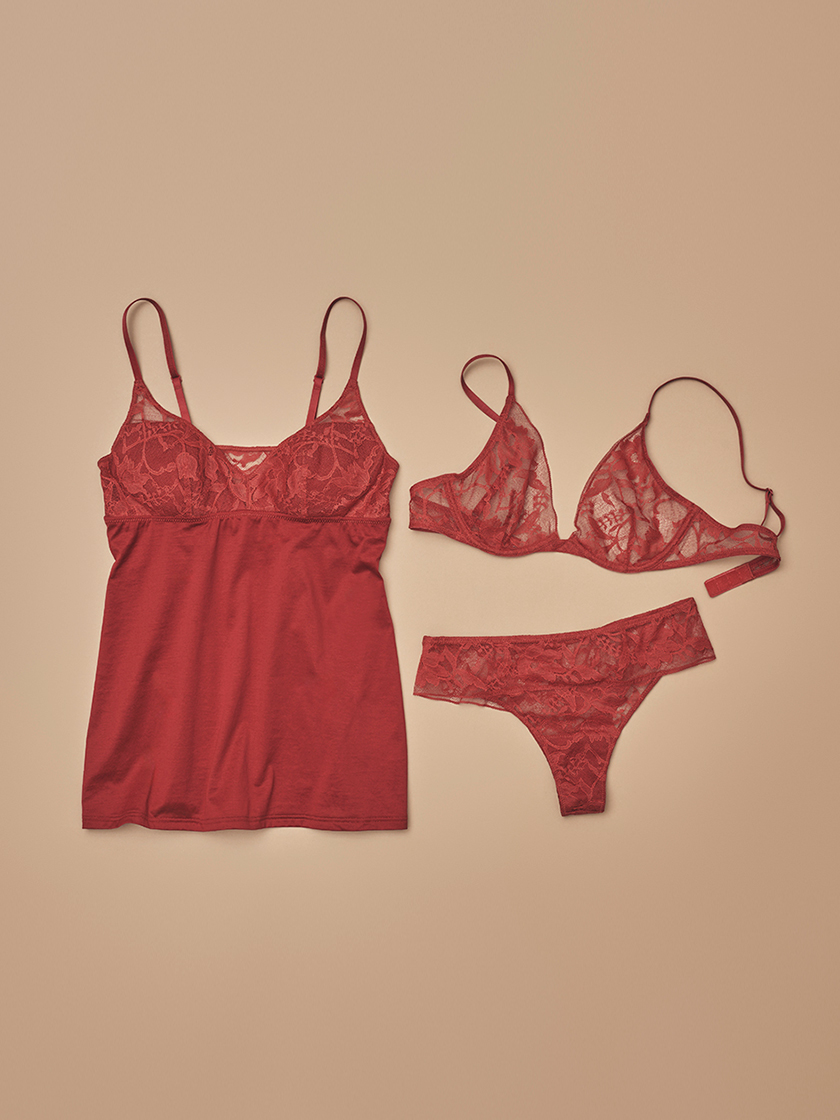 24AWは、ブラジルのOCCAR NIEMEYERという建築家にフィーチャーしたコレクション。「CIDADE」は、植物を描いたオリジナルのストレッチレースと綿100%の天竺の組み合わせたシリーズ。素材特有の上品な艶が肌を優美に見せてくれます。