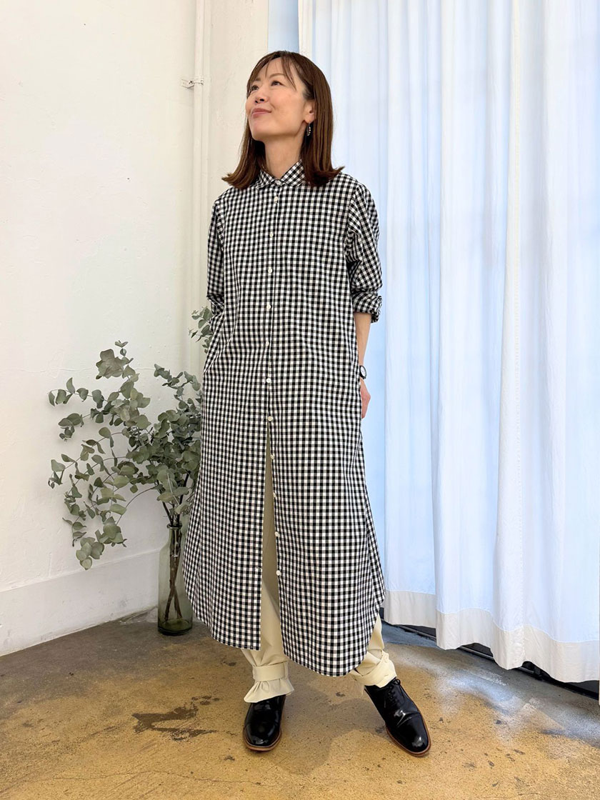 春の定番、ピマソロブロードを使用したシャツワンピース。