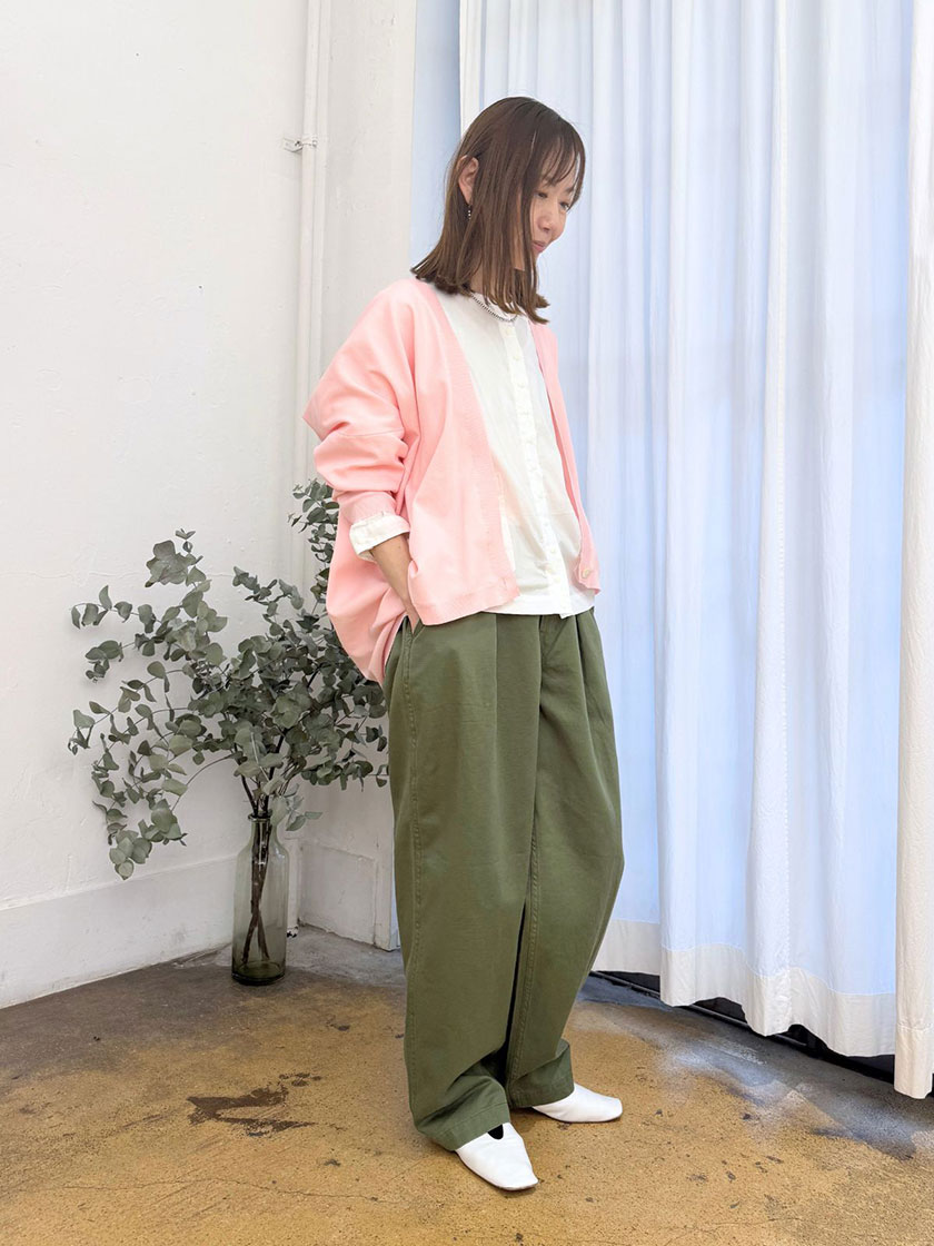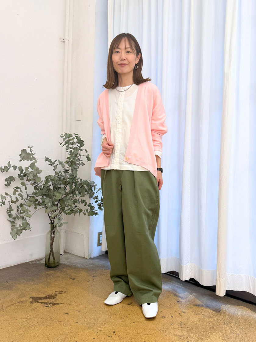 動きやすさと快適さを兼ね備えたパンツで、春らしい上品カジュアルスタイルが完成します。
