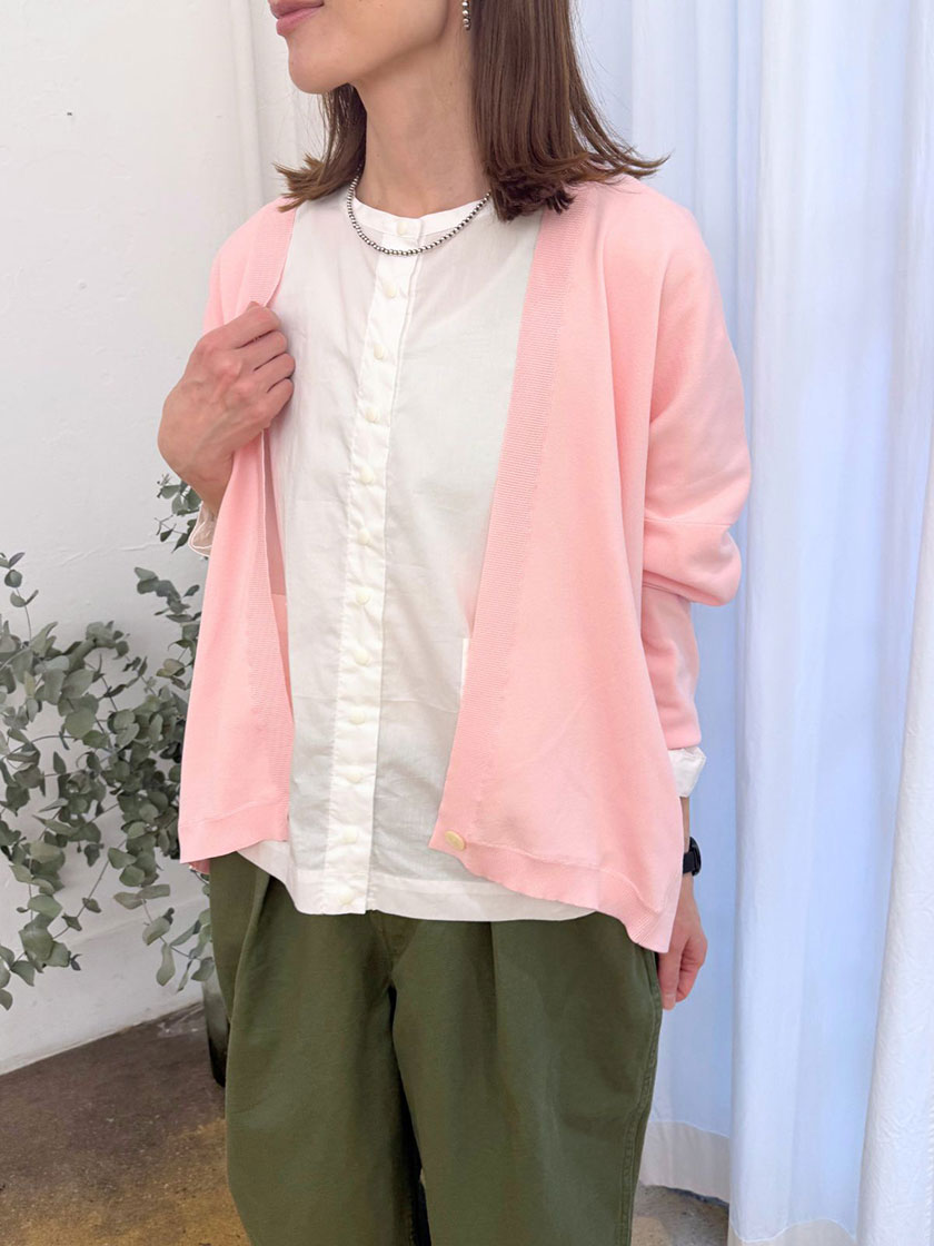 インナーにはストレッチの光沢感が高く、シワになりにくく 乾きも早いブロードのブラウス、ボトムには、柔らかいはき心地が特徴のTHE BASIC CHINOを合わせて、春らしい心地よいコーデに。軽やかなボレロとベーシックなチノパンツで、オンオフ問わず活躍するスタイルを楽しんでください。