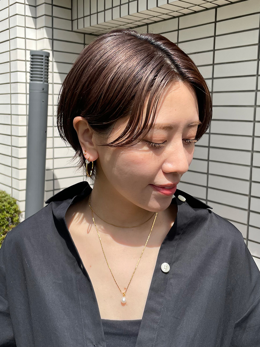 さきほどのハギーピアスのパールを、フープピアスに付けてアレンジしてみました。軽装になるこれからの季節、ジュエリーで顔周りを華やかにしたいですよね。他にも自由な発想で、ぜひ自分だけのアレンジを楽しんでみてください。