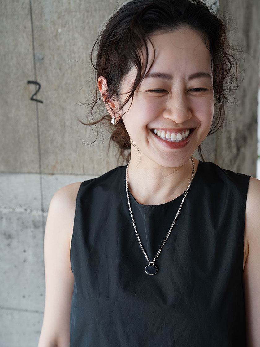 深みのあるオニキスとシルバーが引き立つリバーシブルネックレス。裏面には白蝶貝をあしらい、気分で表情を変えられます。ぽってりとしたドロップ型ピアスはキャッチレスタイプで、耳にフィット。コンパクトながら存在感があり、クリーンで洗練された印象に。シルバーで統一することで、涼しげでモードなムードが生まれます。