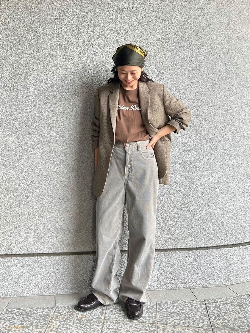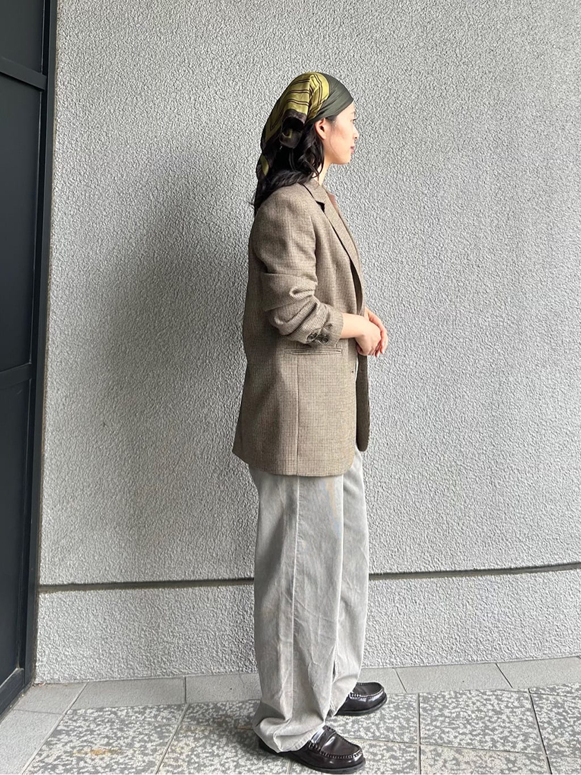今回はブラウンでトラッドにまとめつつ、スカーフをワンポイントにしました。
