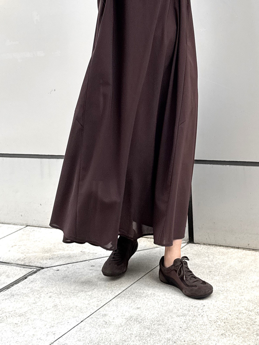 たっぷりと贅沢に生地を使っているからこその揺れ感が大人な着こなしにしてくれるメッシュロングドレス。目の詰まった細やかなメッシュ素材でこれからの季節も肌から心地よく離れてくれて、暑い夏にぴったりのアイテム。袖口のさりげないボリュームや肩のスリット、後ろのVネックのあきが適度な肌見せを叶えてくれて、女性らしさと抜け感を演出。フラットサンダルやスニーカーでも肩の力が抜けた大人のカジュアルスタイルが完成! ジャージならではの快適さがデイリーに活躍する一枚です。