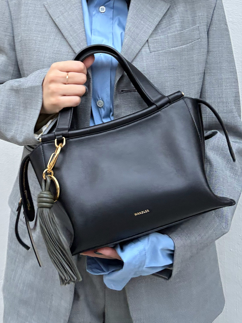 モダンで軽やかなバッグだからこそ、デニムとのカジュアルな合わせでも上品な雰囲気を纏えます。マチを底だけに設けたすっきりとしたデザインの「トートE」は幅を取らず、お出かけや旅行の際のサブバッグとしてもおすすめです。