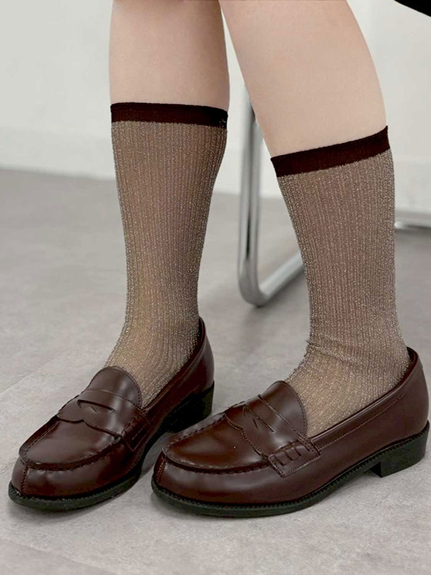 ラメ糸のきらめきとシアーの透明感が、冬のスタイルを軽やかにアップデート。イベントやちょっとしたお出かけなど、足元にささやかな華やぎが欲しい日に頼れる存在です。