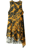 夏の夜のパーティやバカンス先でのディナーなどに、華やかさと開放感のあるワンピースが欲しいなと探していたところ、目に留まったのがこちらのアドーアの山吹色のリーフプリントワンピース。