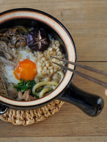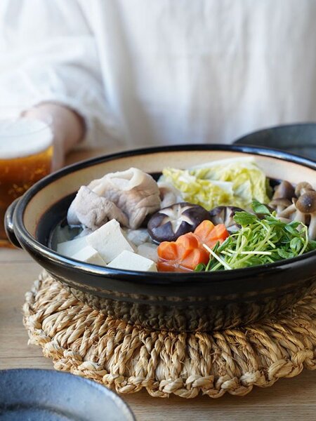 食卓でそのまま使う土鍋は、見た目も機能も欲張って選びたい。150年の歴史をもつ「カネダイ陶器」の土鍋や行平鍋は、伊賀焼らしい深みのある黒色「天目釉」が印象的。伊賀の土鍋は、ゆっくり熱を伝えてくれ、素材のうまみをじっくり引き出します。また、淡路島発「あわびウェア」のココット鍋は、まるでフリルのような持ち手がついたエレガントなデザイン。テーブルにそのまま出しても絵になり、ついつい出番が増えてしまいそう。おしゃれさと機能、どちらも満足できる逸品です。