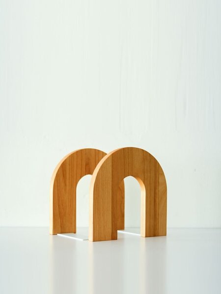 ロサンゼルス発、デザイナー奥田慎一郎による木製ブックエンド。アメリカで少量生産されていた人気シリーズが、日本生産で実現。シンプルながらも遊び心のあるデザインが魅力だ。