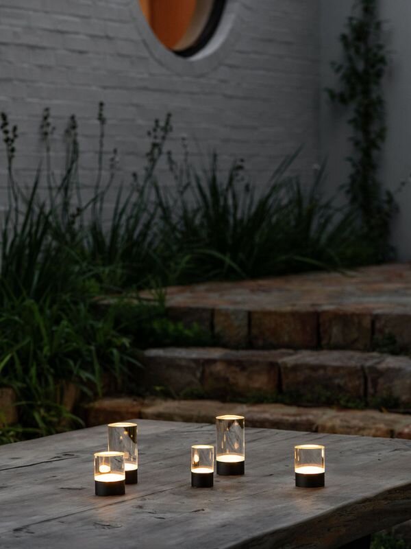 「アウトドアランタン」は、屋外でも使えるミニマルな持ち手が付いたガラスドーム型。ベランダに置いたり、吊るしたりとアウトドアシーンでも大活躍。