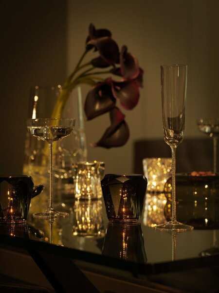 ソリッドガラスの透明感と、放射状に広がる光が豊かな表情を作り出す「クリスタル」。熟練の職人による繊細なカッティングが、灯りを受けてきらめき、まるでアートピースのよう。テーブルいっぱいに広がるきらめきを楽しんで。
