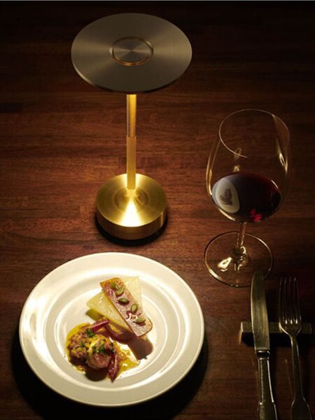 すべてのパーツを金属の塊から削り出して作られた、重厚感あるテーブルランプ「ターン」。シェードの天面に軽くタッチするだけで、キャンドルのような微かな光から、読書を楽しめる明るさまで変化可能です。