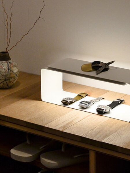 「LIGHT SHELF」は、照明でありながら「飾る」楽しみも叶えてくれるユニークライト。ジュエリーや時計、お気に入りの小物を並べれば、まるでショップのディスプレイのよう。