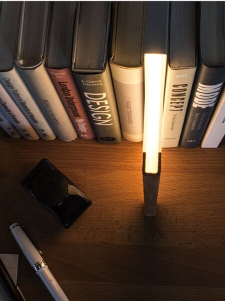 本型のデザインから優しい光を放つ「NIGHT BOOK」。本のように引き出すと点灯し、しまうと消灯するON・OFFも楽しい照明。背表紙部分はヌメ革を貼り込んでおり、使い込むほどに味わいが増しお気に入りの一冊のように。