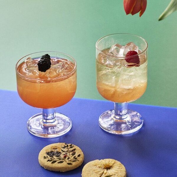 脚付きなら、ワインやカクテルを飲むのにもピッタリだし、テーブルに高さが出て食卓も一気に華やかになります。代表選手は、HAYの「TAVERN GLASS WIDE」(写真上)や、イッケンドルフの「TUTUボウル/ウォーター」(写真下)。ドリンクを飲むにはちょっと大きいけれど、イッタラの「ミランダ ボウル」もフルーツポンチなどを盛り付けたくなるサイズです。