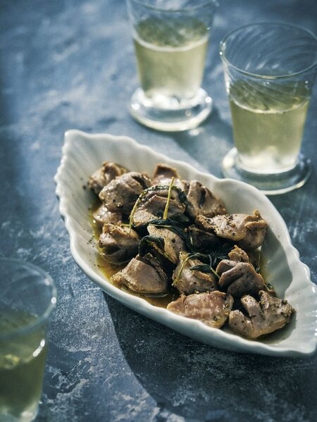 セージバターをまとった砂肝のソテーに加えると、香りが立ち、複雑で奥深い味わいに。ワインビネガーと同じくドレッシングやマリネの下味、肉や魚の煮込み料理のアクセントに加えたりと、どんな料理にも使いやすいです。