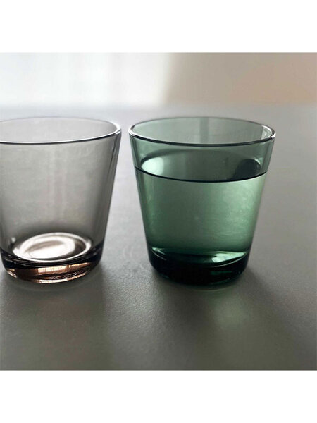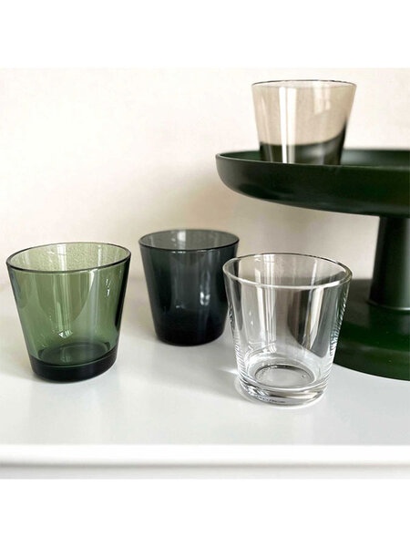 自宅の食器棚に並ぶグラスは、繊細な薄造りのものが中心。すっとした佇まいや、疲れない軽さ、口当たりのよさが好みな一方で、割れやすいため扱いに気を使うのが難点。そんななか、毎日気兼ねなしに高頻度で使っているのが、イッタラの「カルティオ」。1958年にフィンランドで誕生して以来、ロングセラーを続けるザ・定番グラスです。
