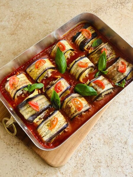 「レクタングルベイカー」を手に入れたら、まずグラタンかラザニアを作りたい! と思い「なすのインボルティーニ風ラザニア」を焼いてみました。熱伝導に優れているので中までしっかり火が通り、こんがりとおいしく仕上がります。野菜や肉、魚などのオーブン料理にもぴったり。取っ手のリングがアクセントになり、そのまま食卓に出しても絵になるおしゃれな佇まいも魅力です。また「レクタングルベイカー」の水分が抜けやすい特性を生かして、ケーキの焼き型としても活用できます。ほかにも料理の下ごしらえや、パスタやサラダなどの盛りつけ皿にも便利。料理好きにおすすめしたい万能アイテムです。