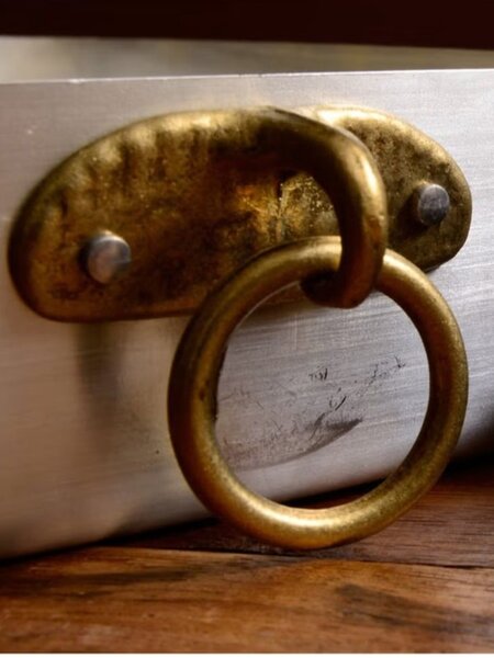 本体はアルミ製、取っ手は重厚感のある真鍮製。使い込むほどに経年変化が現れ、より魅力的なビジュアルに。さまざまなシーンで活用しながら「レクタングルベイカー」を育てる楽しみもあります。