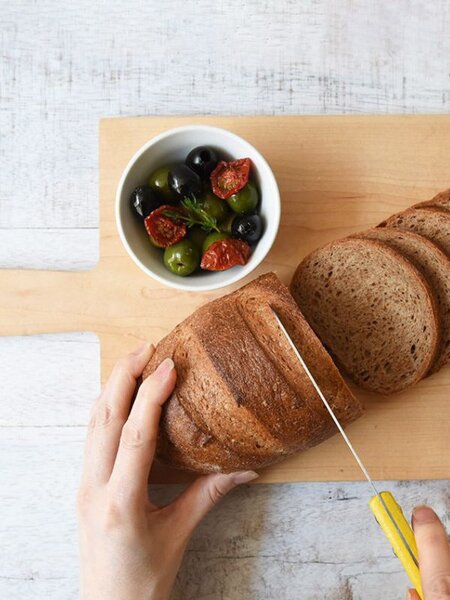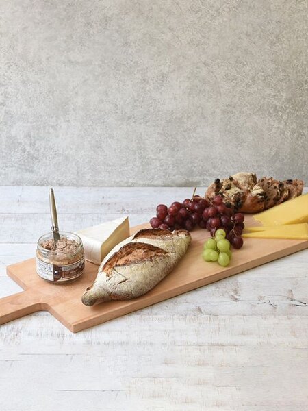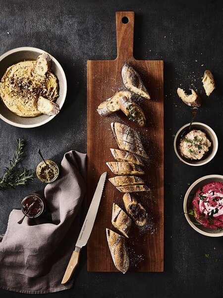 天然素材のため、ひとつとして同じ模様はなく、まさに世界にひとつだけのカッティングボード。オリーブの木は非常に硬く丈夫で、ナイフの傷がつきにくく、長く使えるのもうれしポイント。ハムやバゲットをラフに乗せて使ってみて。