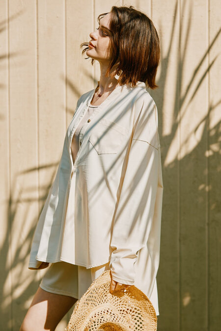 気温が上がるこの時期、サラッと羽織れるお気に入りのシャツが1枚欲しい。薄手のブルゾンは、重く見えない「空気感」を重視。