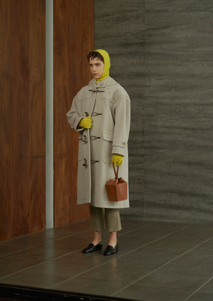 「まず、歴史ある上質さでアイコニックな「オールド イングランド」のダッフルコートをご紹介。1867年の創業以来“世界一高級で高品質な素材を、最高級の天然素材で織り上げる”という哲学を掲げる英国老舗生地メーカー「ジョシュアエリス」の生地を使用。特殊な織機でしか織れない、他では再現不可能な最高級の質感を持ち合わせています。肉厚ではありますが、袖を通すと非常に軽く、とても暖かい唯一無二の素材です」。