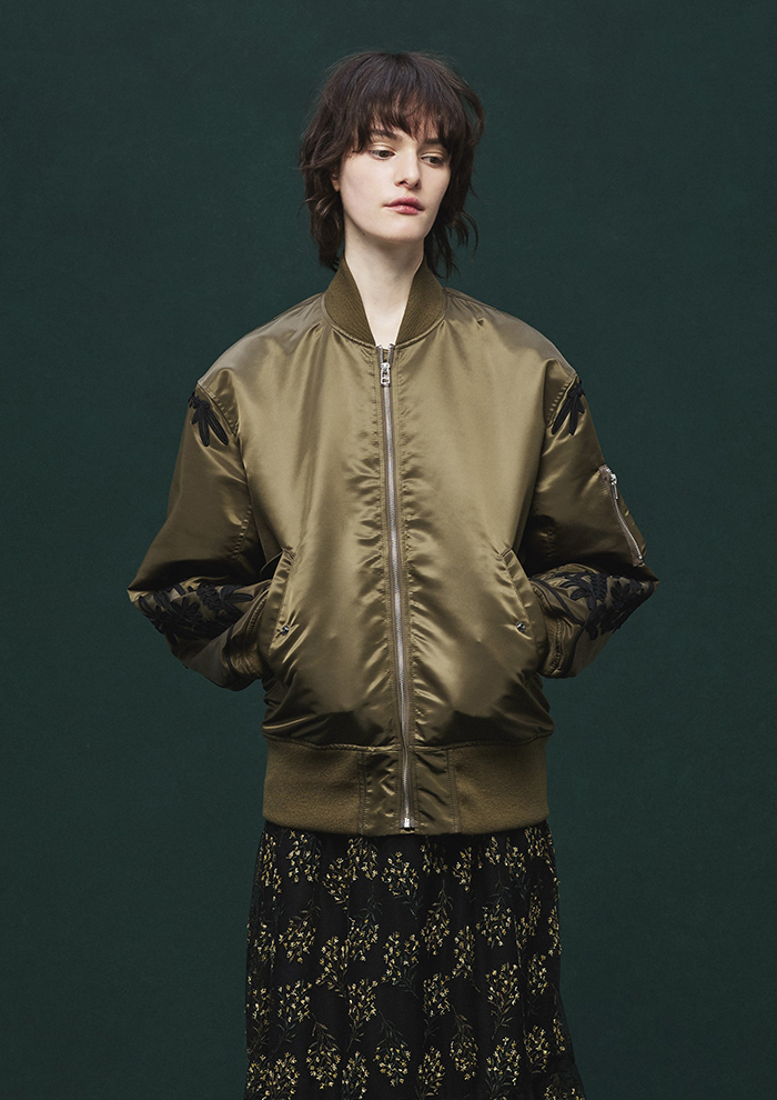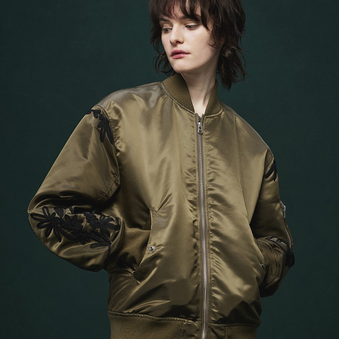 「『ロキト』を象徴するコード刺しゅう。MA-1の袖にコード刺しゅうを施し、カジュアルなスタイルになじむよう、ちょっとした華やかさをプラスしました。普段MA-1を着られないような方にもおすすめです」。
