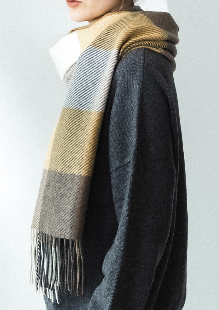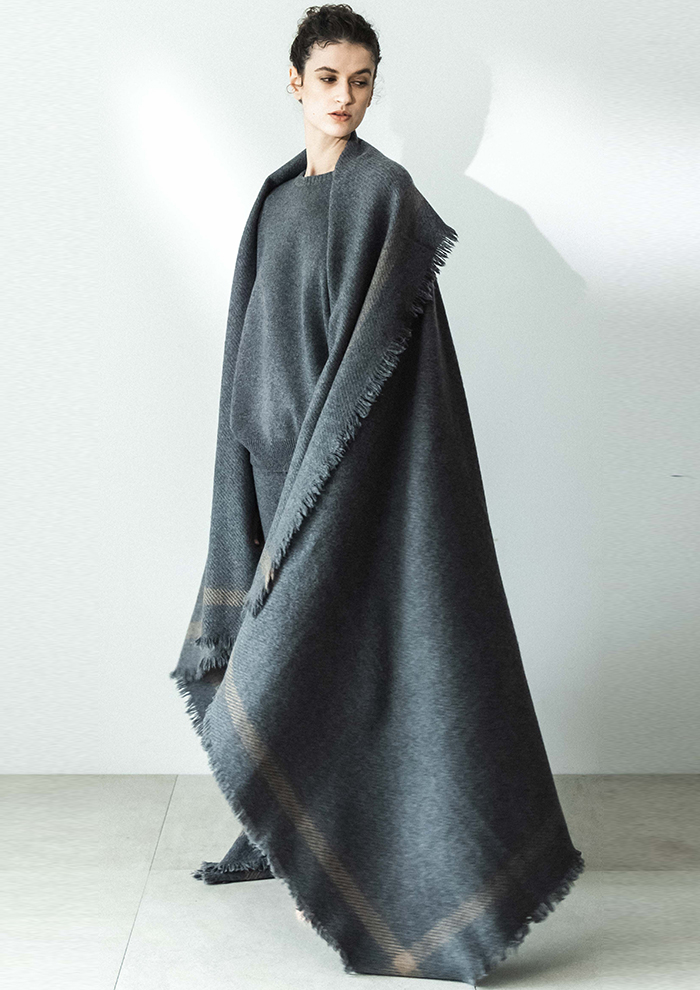 「糸の生産工程でどうしてもできてしまう落ちワタを集め、希少なカシミヤ原料を余すことなく使うというコンセプトから生まれたリサイクルカシミヤを使用しブランケットを製作。ラグジュアリーな空間を演出するホームウェア定番のアイテムです。カシミヤ100%のブランケットは何よりも暖かく、心地よく、長く愛用できます」。