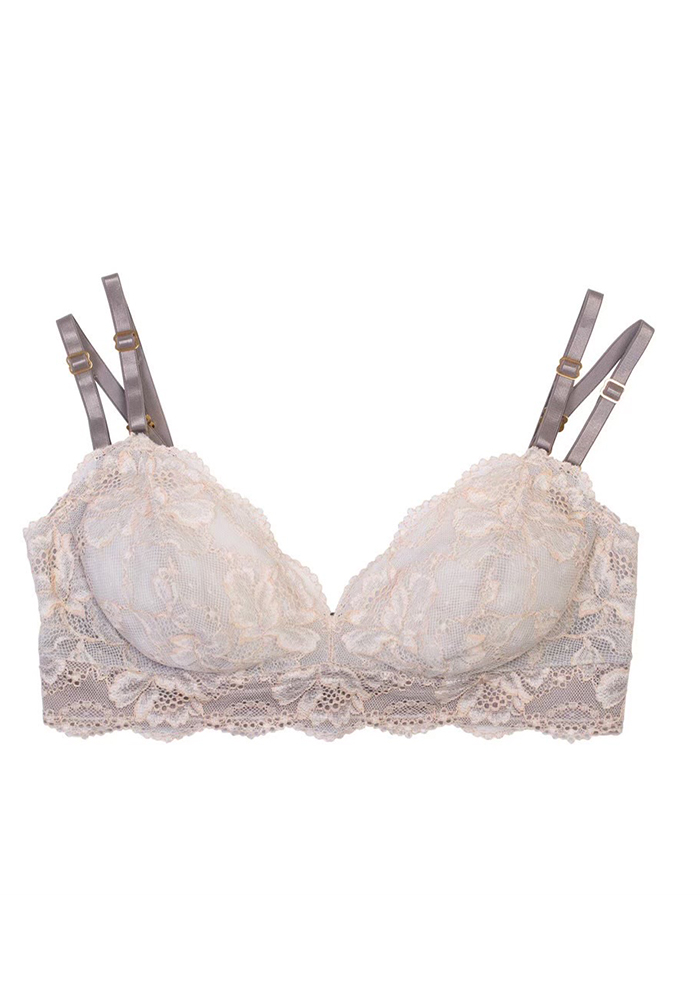 「“楽なつけ心地でバストの谷間がつくれるナイトブラ”をテーマに、就寝時のバストの横流れや形への悩みに着目し、多くの女性の願いを叶えるために機能性とデザイン性を兼ね備えた“FINAL FORM”のナイトブラ。寝ている状態のバストは横流れをしてポジションを見失います。寝ている状態で過ごす時間が長いとバストの形が崩れる原因に。そこで、伸縮性のある総レースのホールド&フィット感で就寝時の動きに適応し、バストの逃げや横流れを防止。アンダーとサイドから引き上げる2本のストラップの谷間機能がバストの位置と形をキープします」。