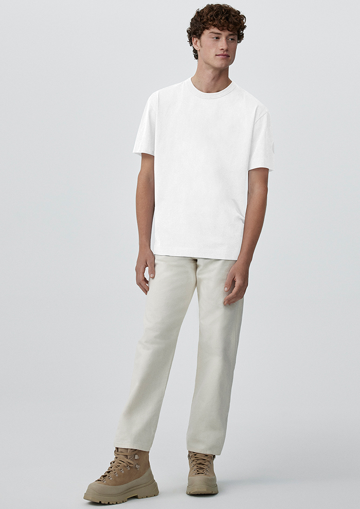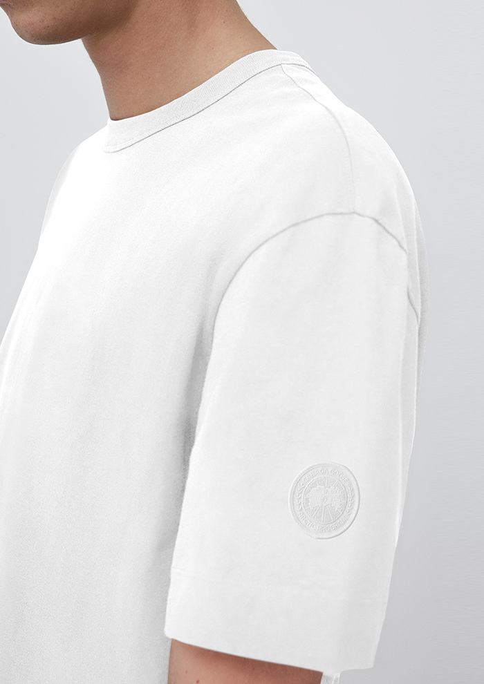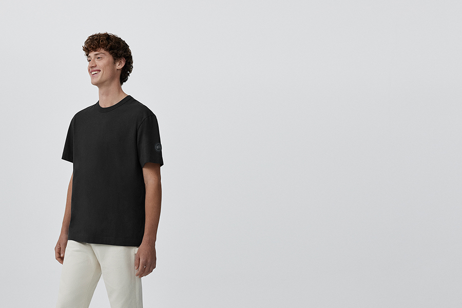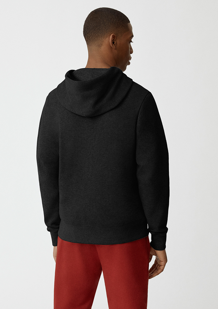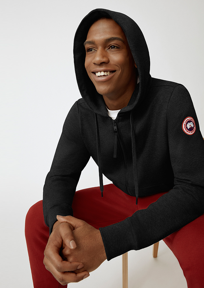 「今シーズンからはメンズラインもアイテムを拡充。注目は初登場のフーディとTシャツです。“ヒューロン フル ジップ フーディ”は、柔らかな肌触りと快適な着心地を追求し、コットン100%でつくったアイテム。春先にはアウターとして、冬場にはレイヤーアイテムとして汎用性も抜群です。「カナダグース」のダウン同様、左腕にあしらったディスクロゴがアクセント。調節可能なドローコード付きフードが顔まわりをカバーし、外気から守ります」。