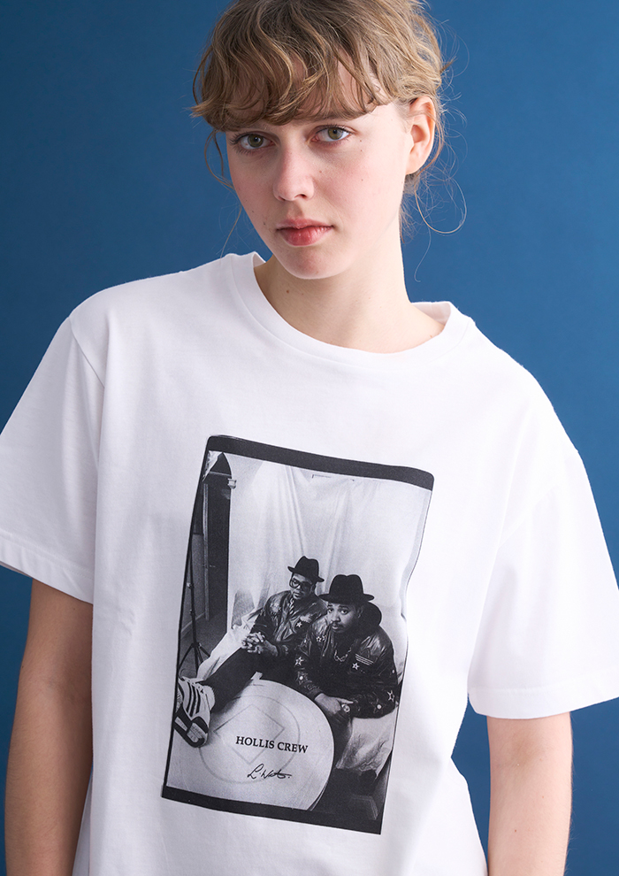「今季特に好評を得ているのが、海外音楽誌などで活躍するフォトグラファー、ローレンス・ワトソン氏のアートワークを使用したミュージックアーティストTシャツ。オアシスのリアム・ギャラガー、ベック、RUN DMCなど、1995年のブランド生誕にちなんで90年代カルチャーに影響したアーティストにフォーカスしました。見る人が見れば分かる控えめな構図も大人らしく着こなせるポイント。特にオアシス再結成の今年、注目度が上がるプリントです。ユニセックスのためサイズ展開も幅広く、女性があえてゆったり着こなすのもおすすめ」。